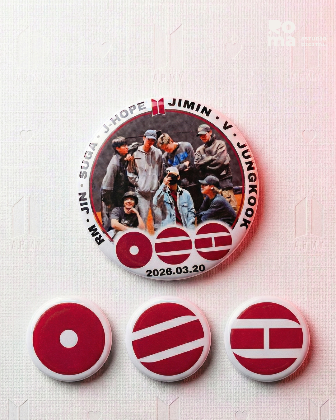 Set de pines BTS - Arirang - 4 pines1 pin de 58mm